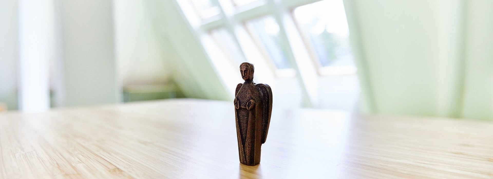 Bronzeengel mit Begleitkarte