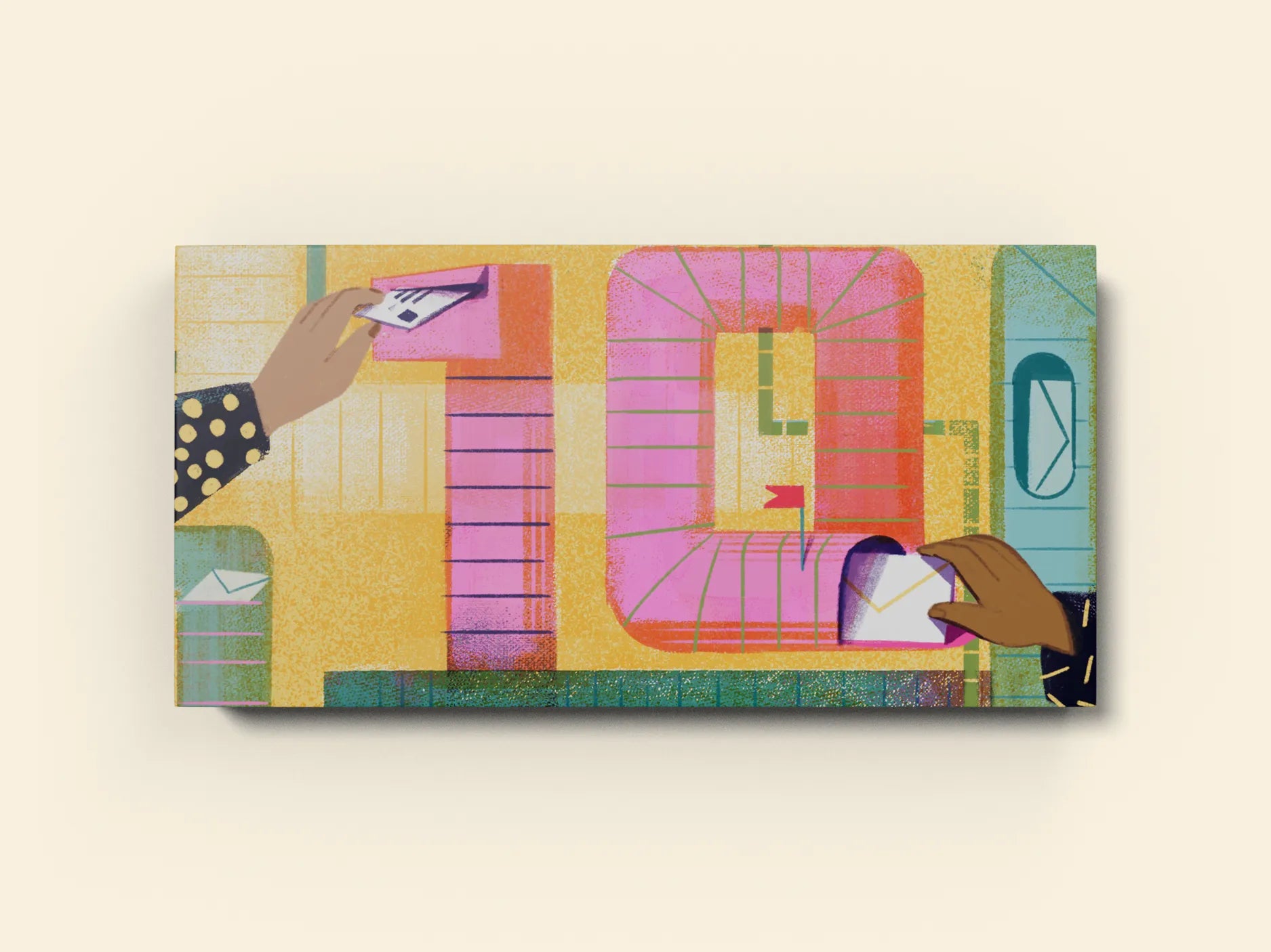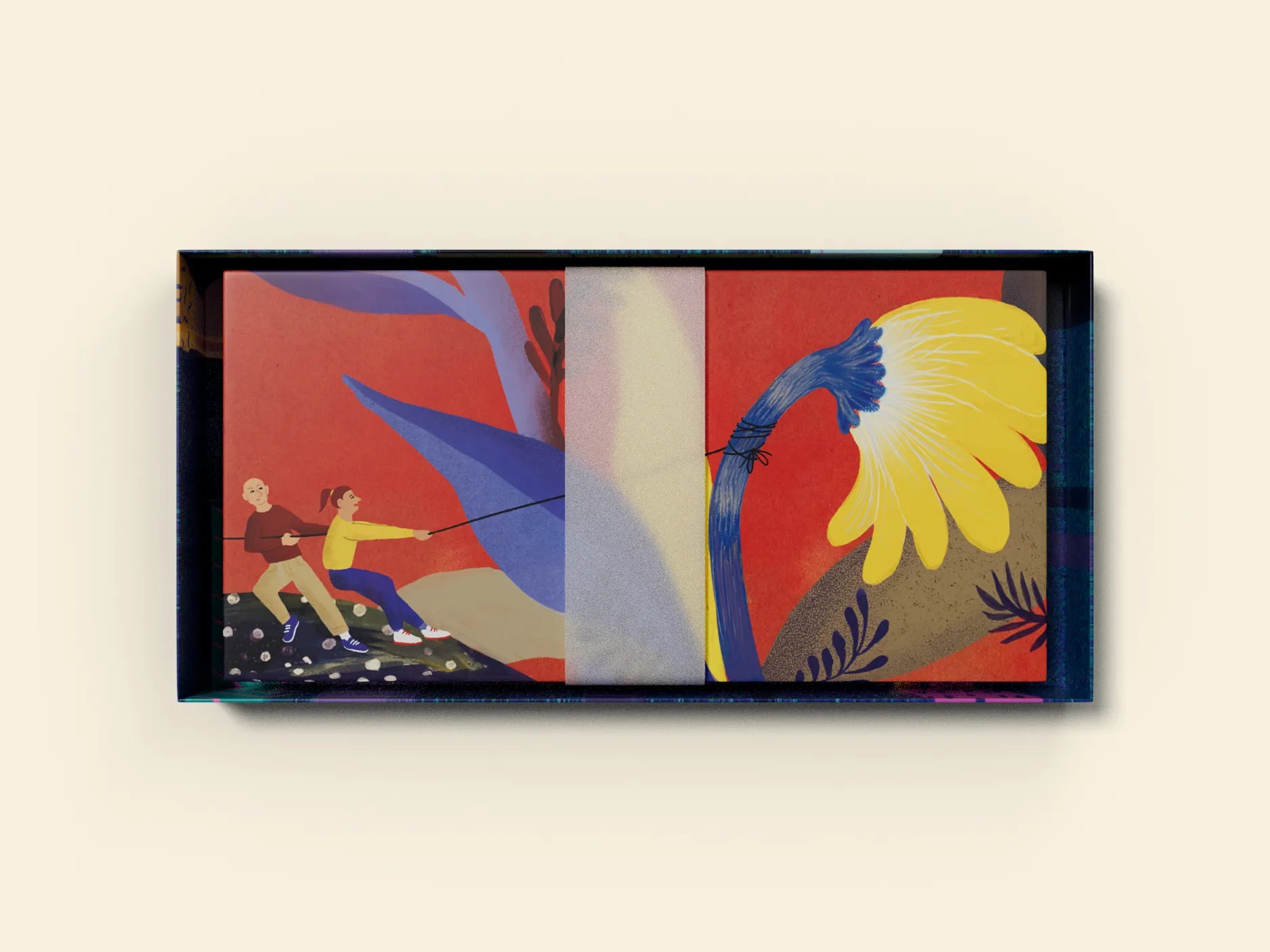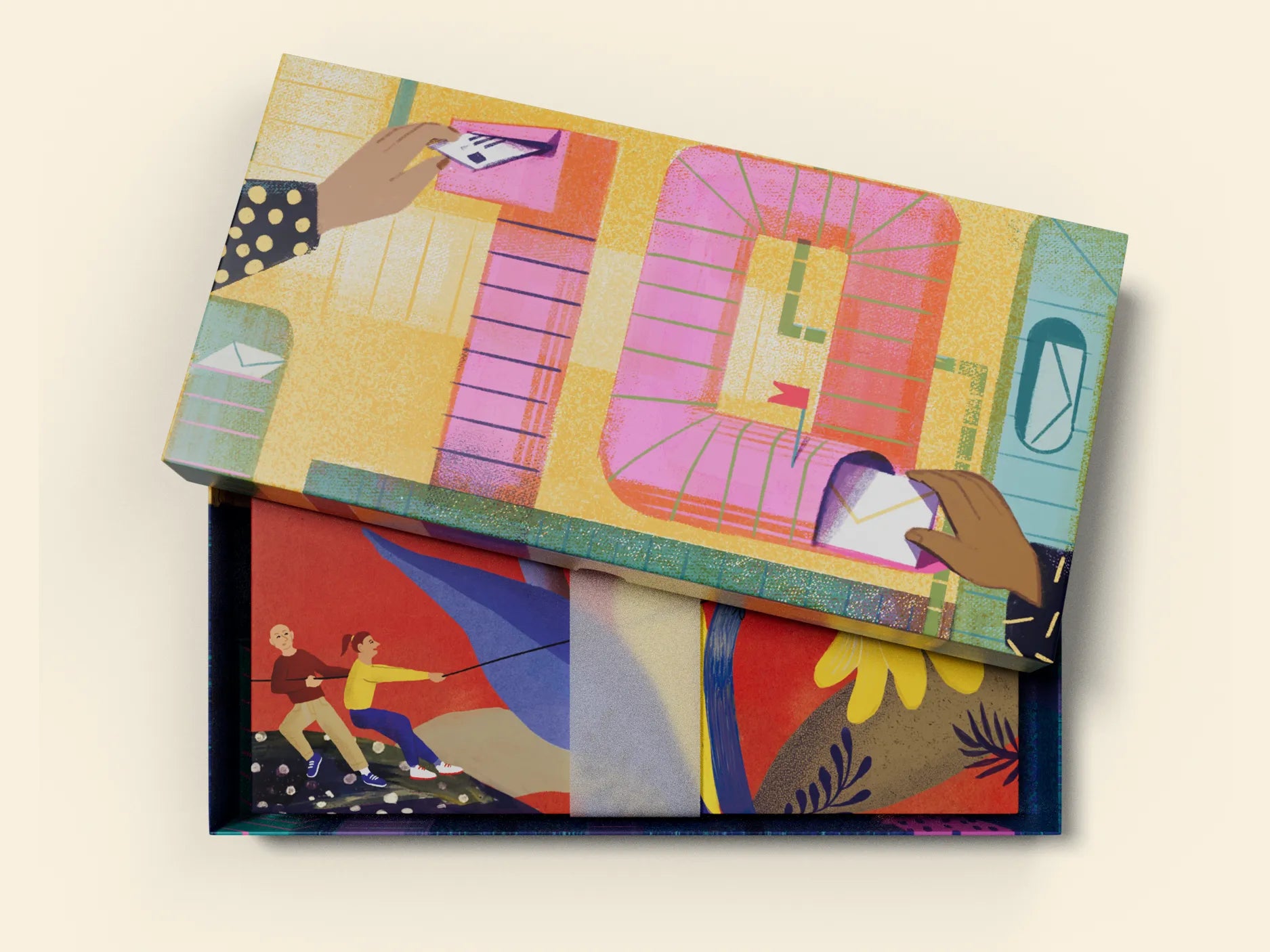 Briefkartenset »10 Jahre wandeln«, 10 Klappkarten DIN A lang mit farbigen Illustrationen und passenden Umschlägen, € 12,50