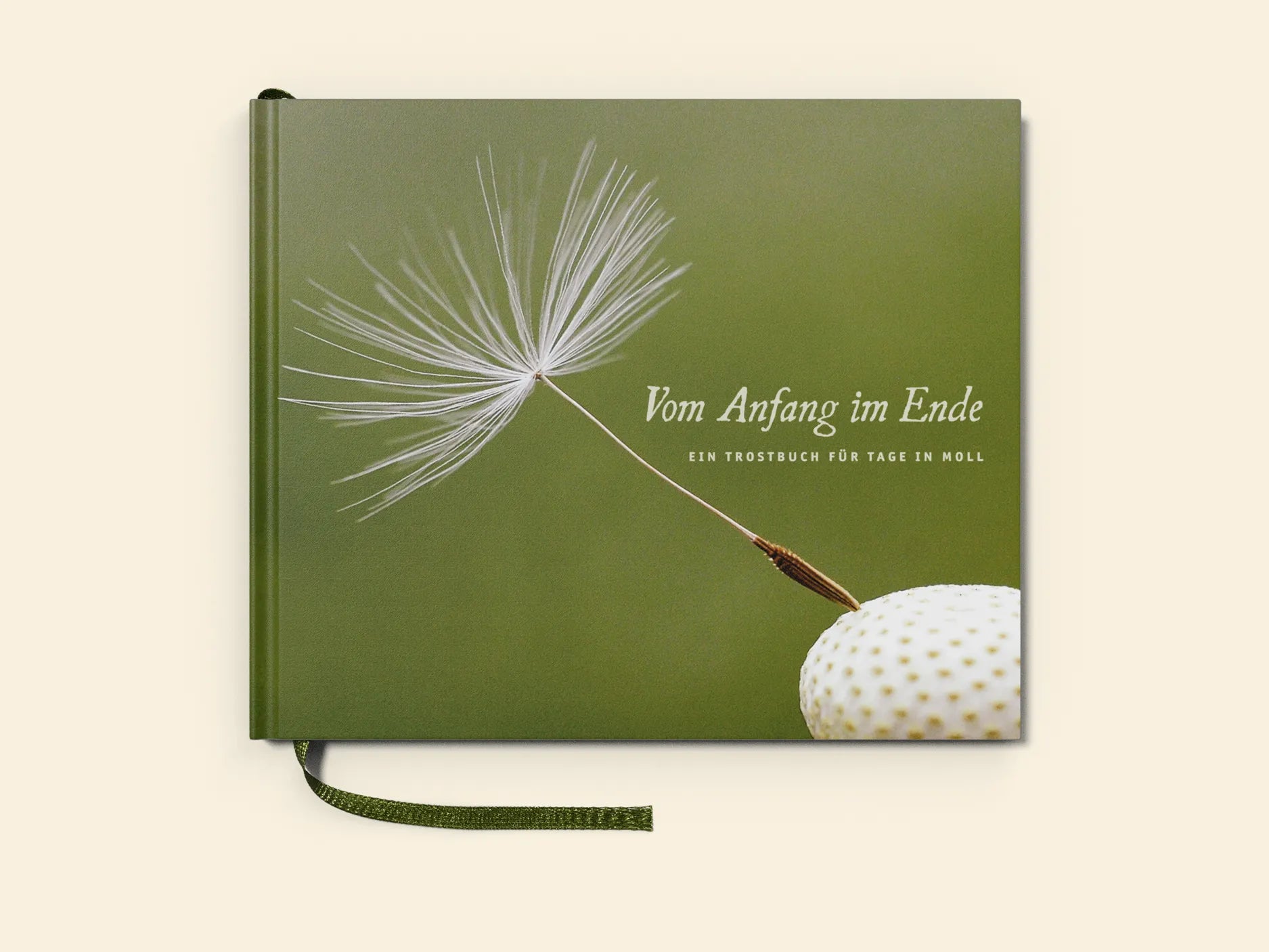 Vom Anfang im Ende. Ein Trostbuch für Tage in Moll (20,5 x 17 cm) umfasst 84 Seiten mit zahlreichen farbigen Bildern. Es hat einen festen Einband, ein Lesebändchen und enthält eine kleine Überraschung.